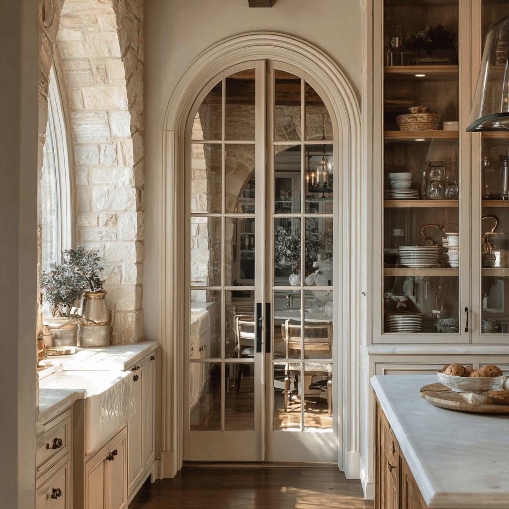 Nothing elevates a kitchen like traditional French doors with multiple glass panes divided by wooden muntins.