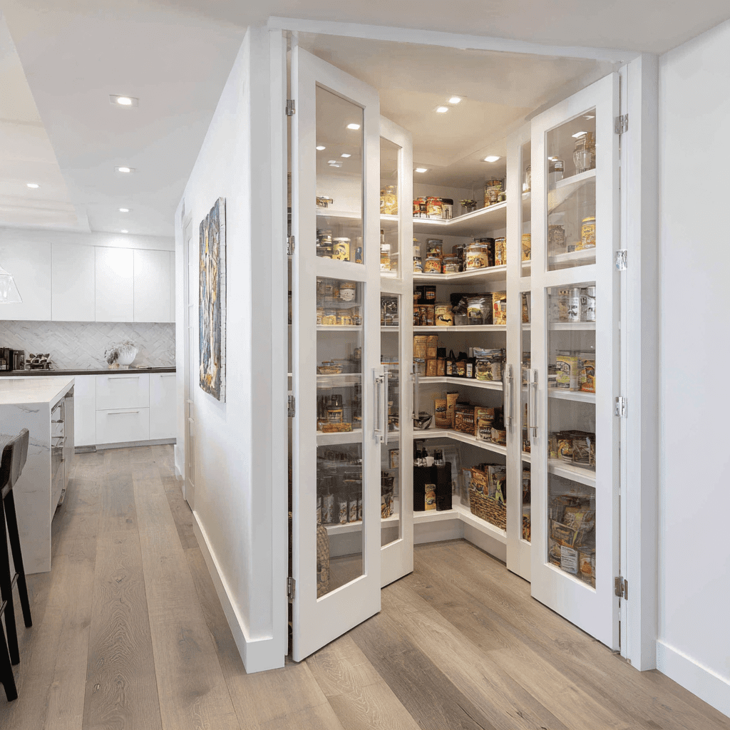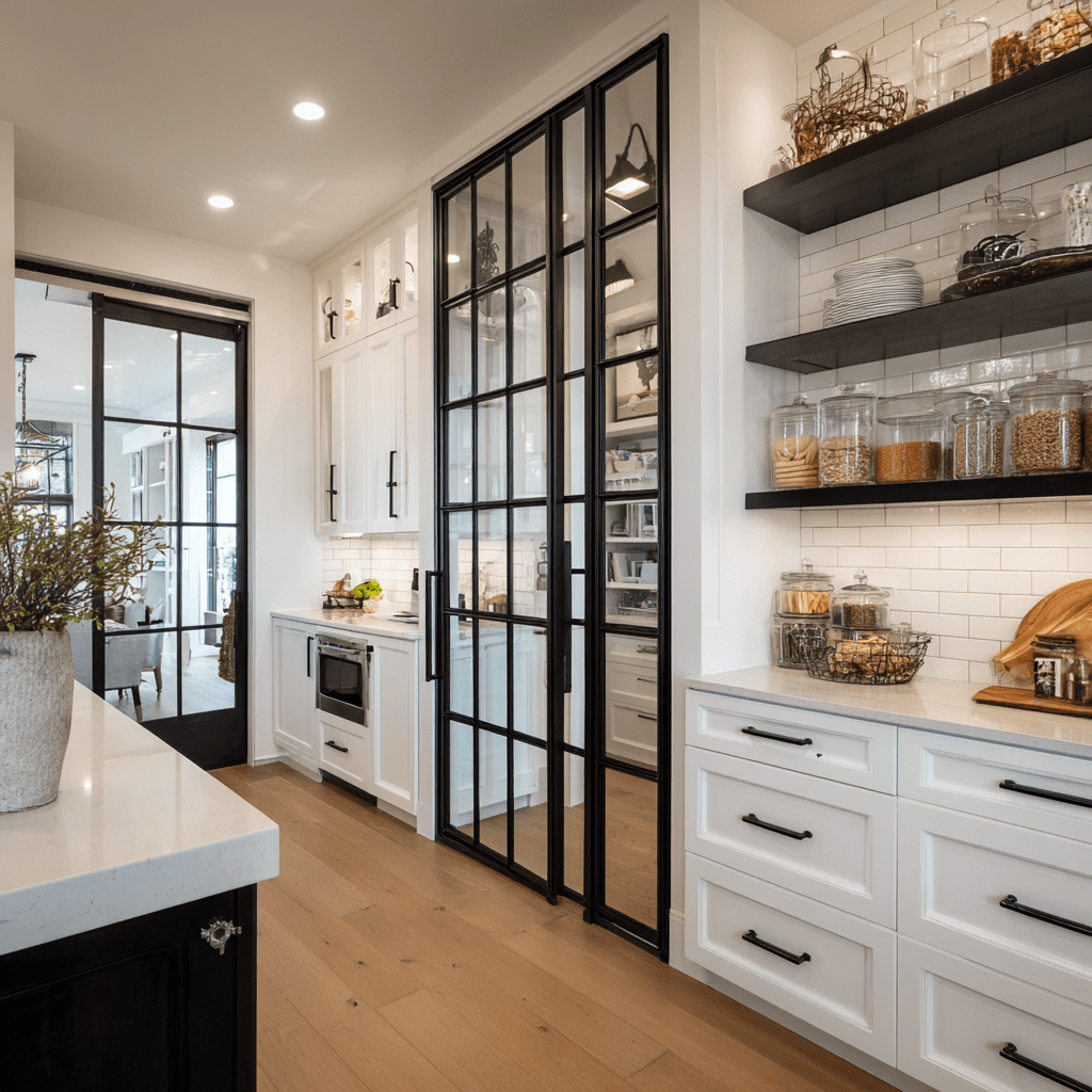 Glass pantry doors offer the perfect blend of style and function, allowing natural light to flow while showcasing—or tastefully concealing—what’s inside.