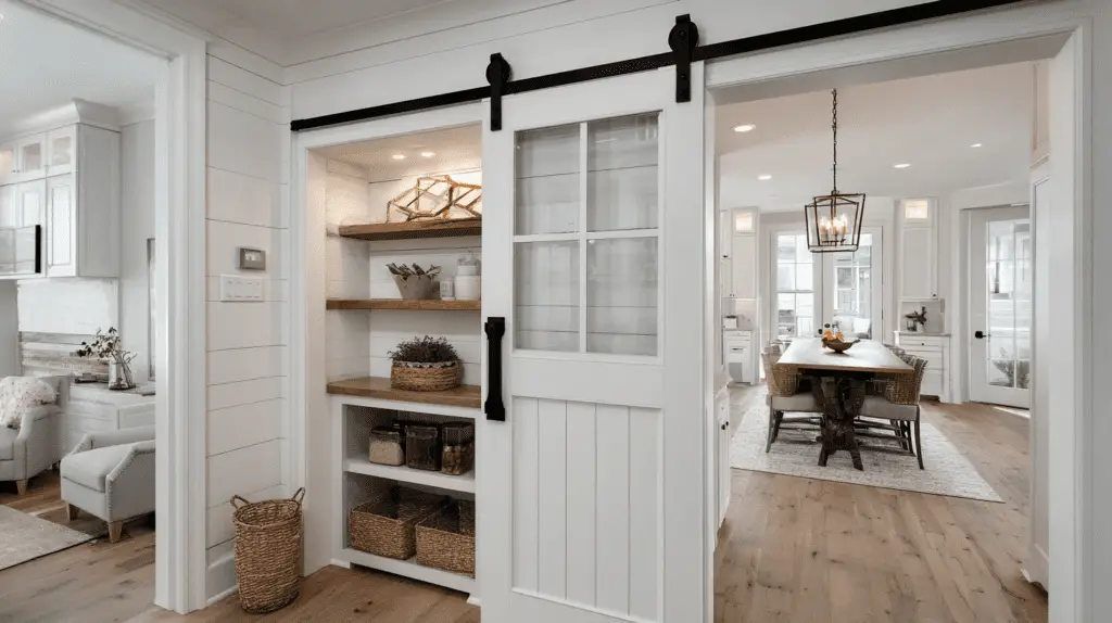 Nothing adds character like an authentic vintage door repurposed as a pantry entrance. Architectural salvage yards often have old glass-paneled doors with patina and charm that new reproductions simply can’t match.
