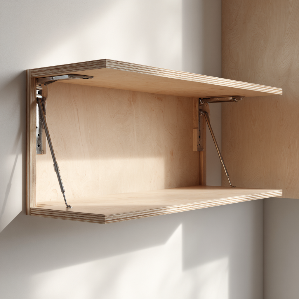 This fold-down wooden shelf extends when pulled out and drops flat when not needed. It’s a genius idea for small pantries needing flexible space.
