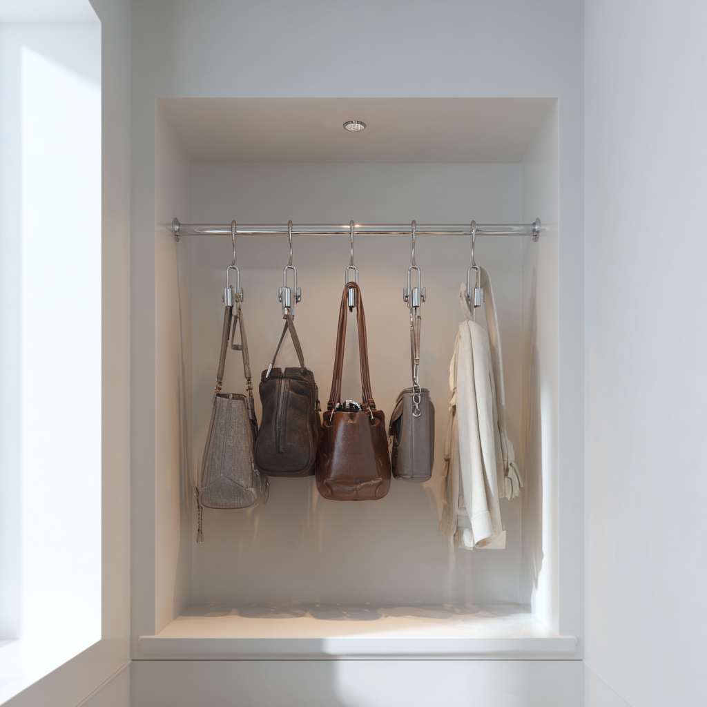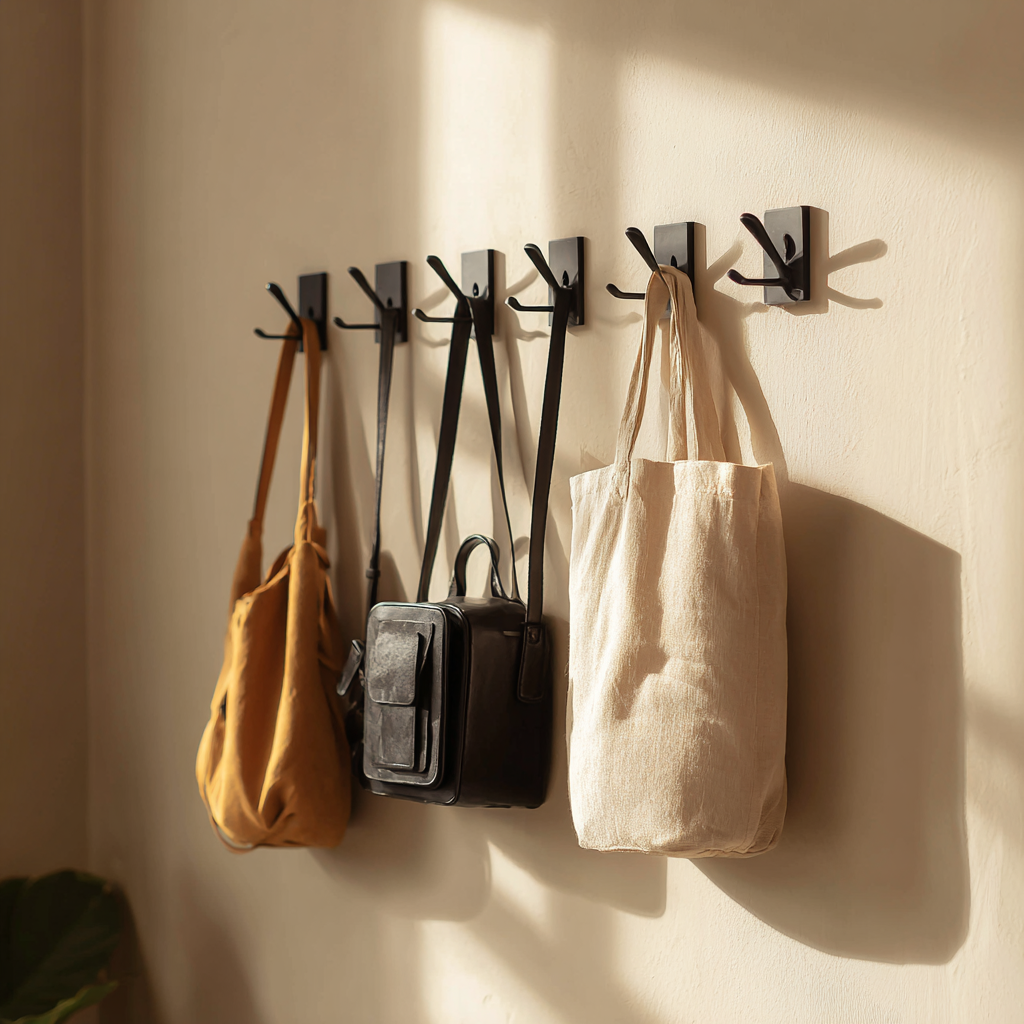 Hooks work especially well for daily-use bags because everything stays within reach. Plus, they free up floor and shelf space instantly.