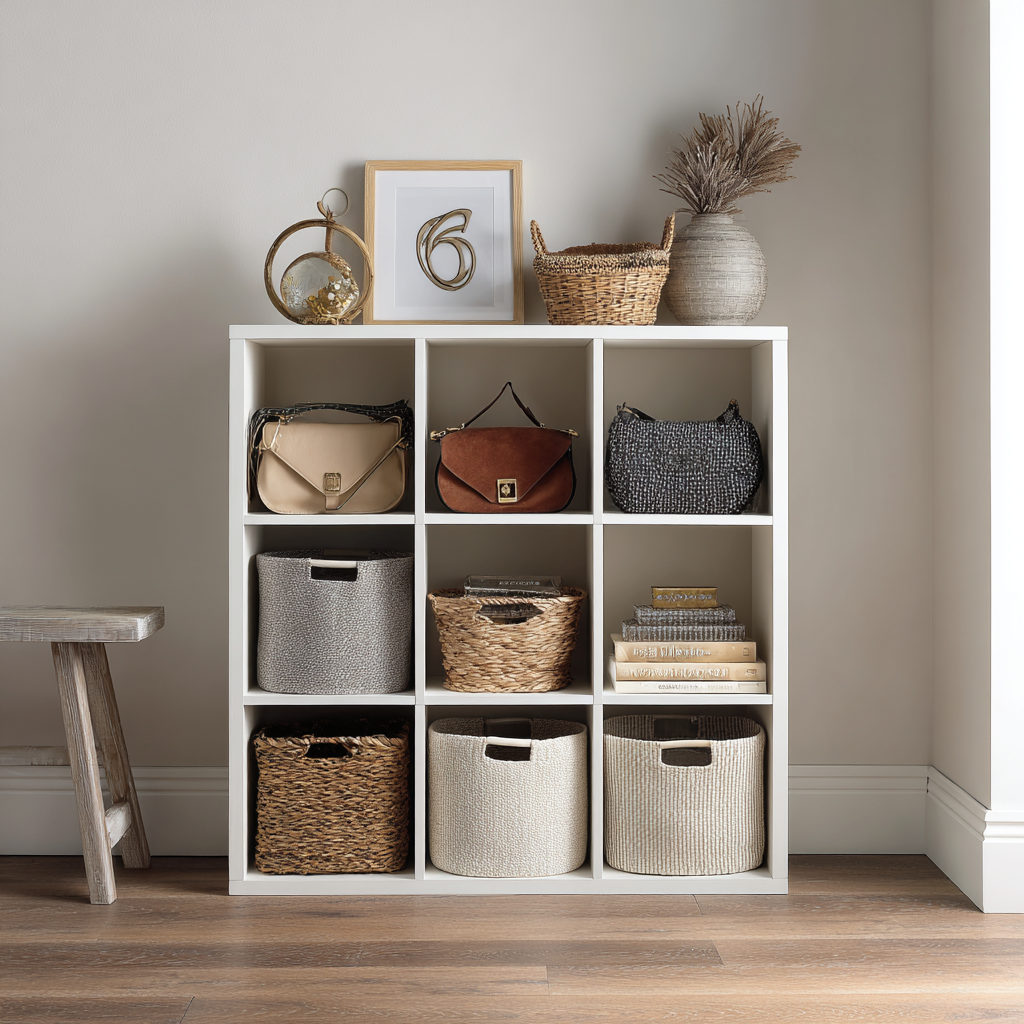 A cubby-style unit gives every purse its own little home. No stacking. No squishing. Just clean, separated compartments that make your closet look instantly organized.