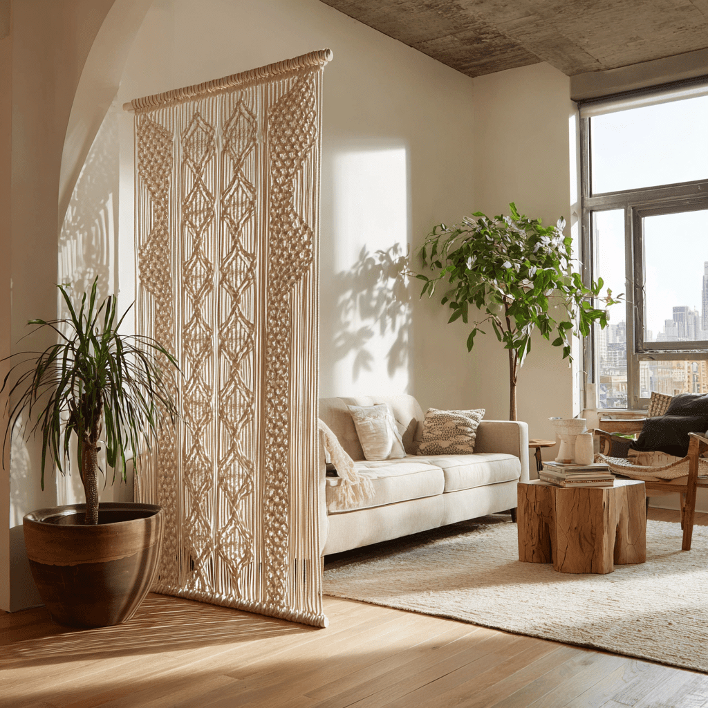 Soft, artsy, and full of personality. Rope or macramé dividers add separation without visual weight.