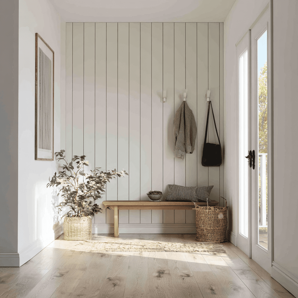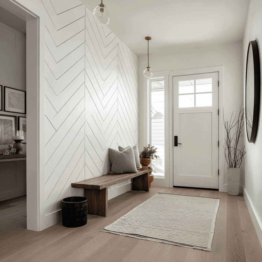 Vertical shiplap draws the eye upward, making small entryways feel taller and airier. It’s a simple switch from traditional horizontal boards but the impact is huge.
