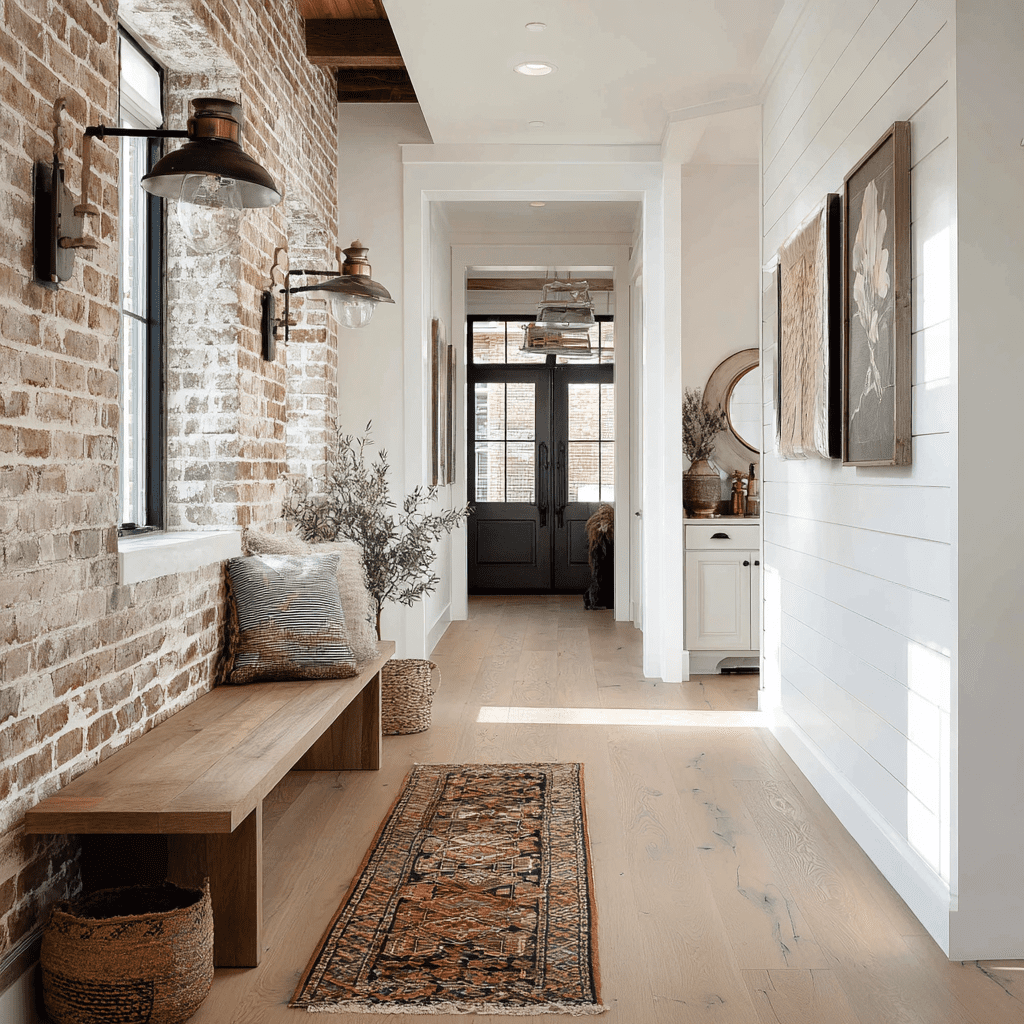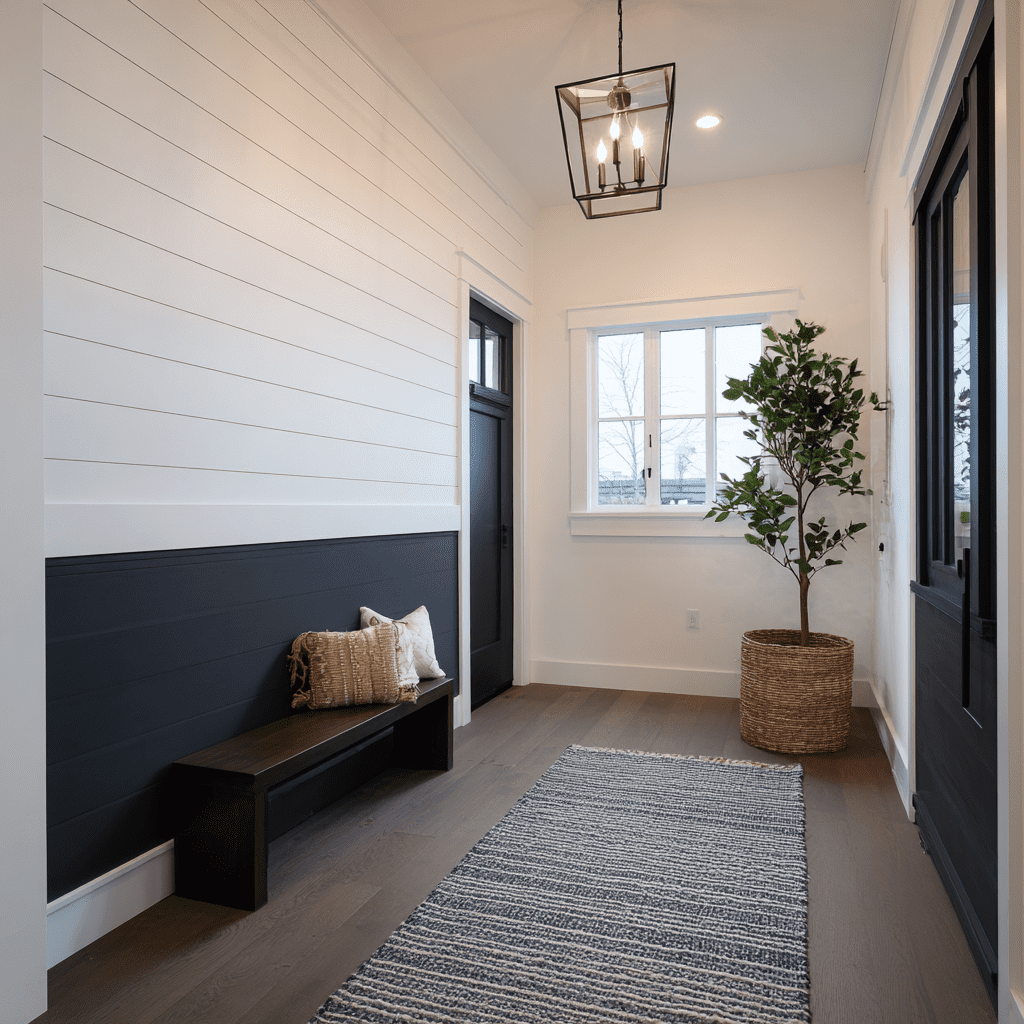 If your entryway is more hallway than room, wrap shiplap along both sides. It creates flow and makes the space feel intentional, not awkward.