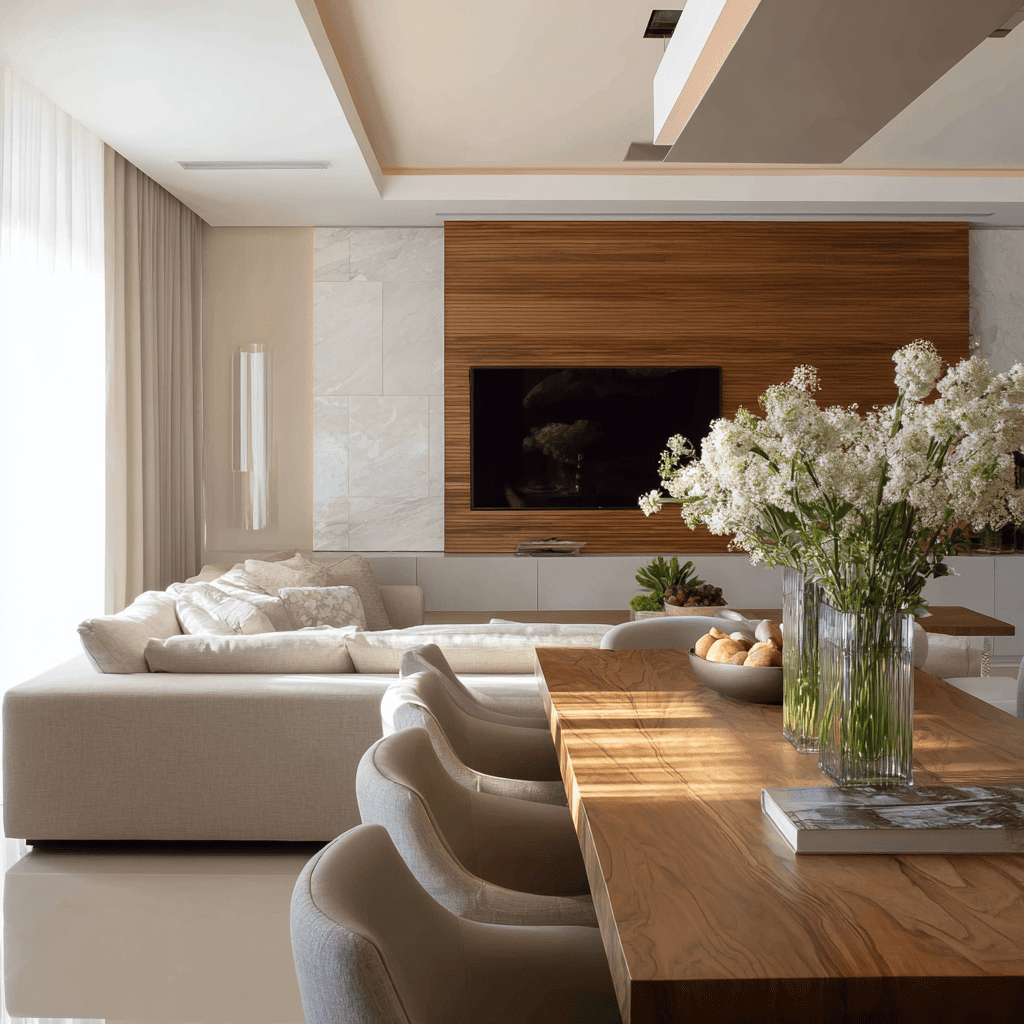 Modular seating lets you rearrange your living room depending on whether you’re watching TV or hosting a meal. Flexibility is the real hero here.