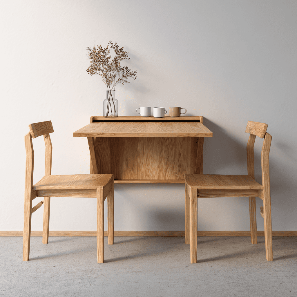 - Wall-mounted fold-down tables save more space
