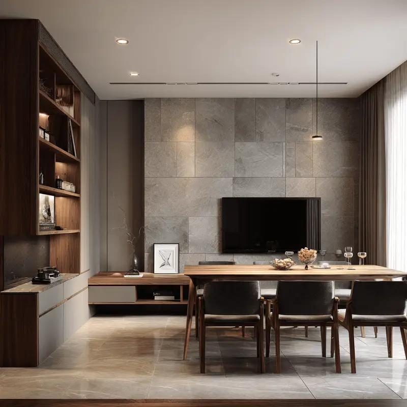 - Match dining chairs with TV unit tones