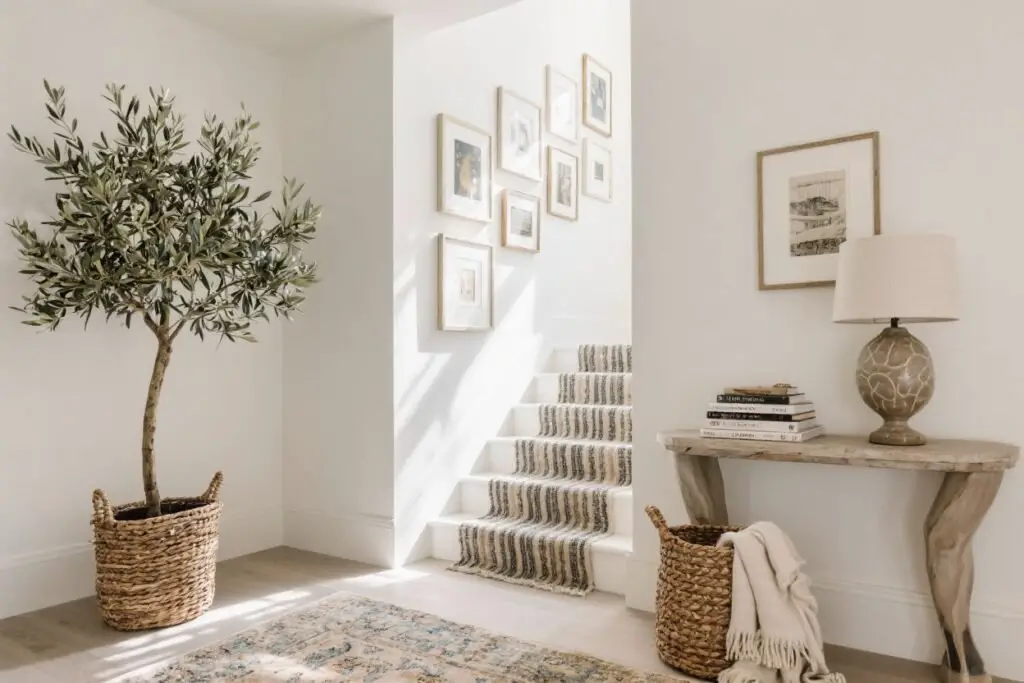 Pro tip: If your landing has no natural light, go faux. High-quality faux greenery looks real and never dies on you. Win-win.