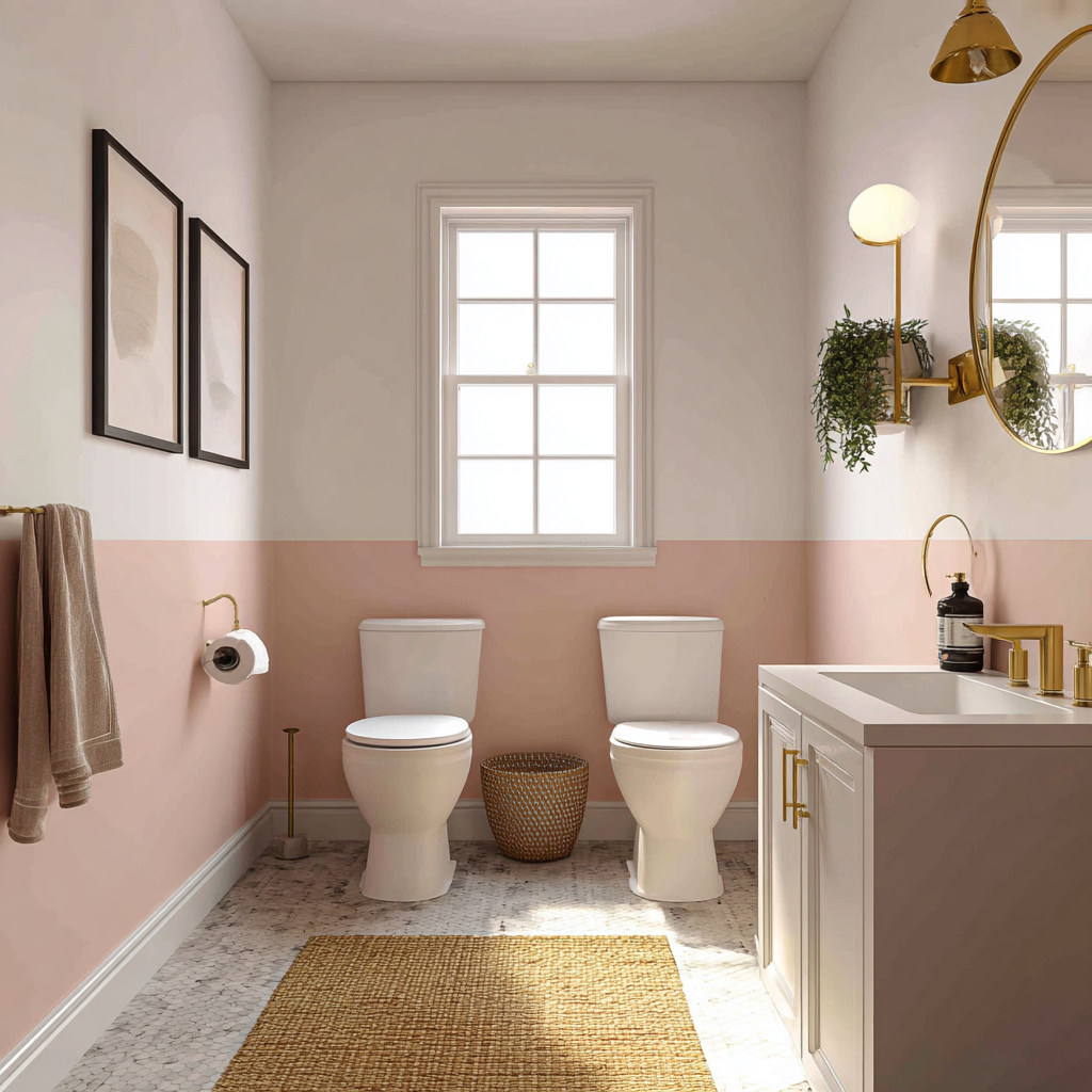 A soft blush on the lower half paired with warm white above instantly makes your bathroom feel gentle and airy. This combo gives your space a subtle glow without overwhelming it. If you want a touch of color but still love the look of neutrals, this is your sweet spot.