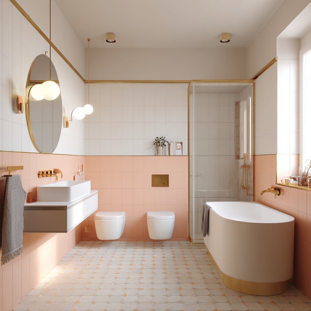 Pastel peach instantly brightens a bathroom and adds that subtle “glow” you didn’t know it needed. When paired with white, the whole room feels soft, airy, and super friendly. It’s perfect if you want color but don’t want anything overly bold.