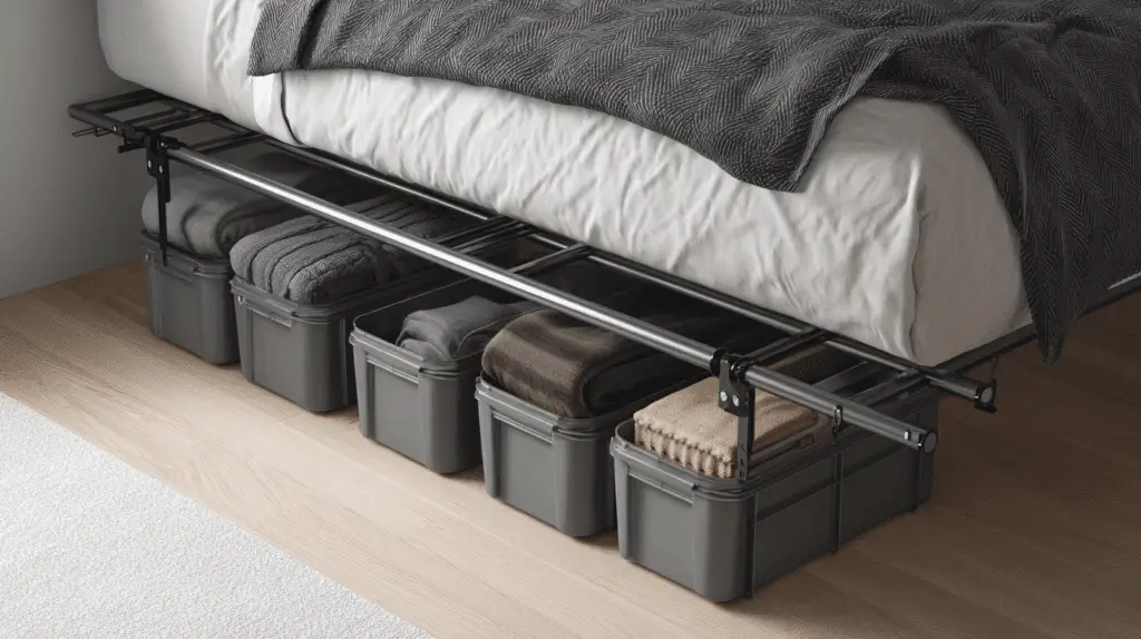 Sliding fabric bins are lightweight containers that glide under your bed without any hassle. They’re perfect when you want something soft, flexible, and cute instead of bulky plastic boxes. Plus, they keep things tidy without making your room feel crowded.